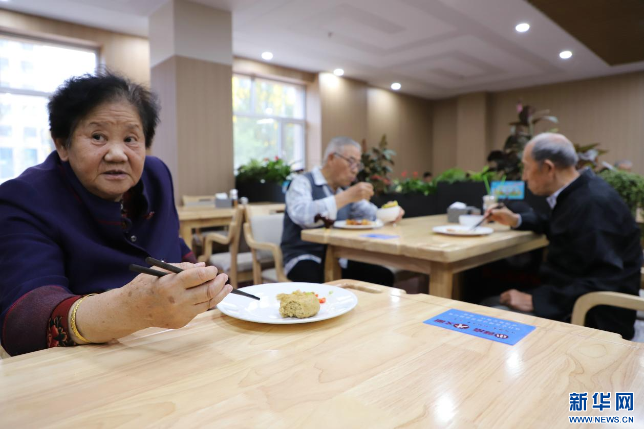 9月11日,老人们在乌兰察布市集宁区泉山街道为老惠民餐厅就餐。新华网发(张林虎 摄)