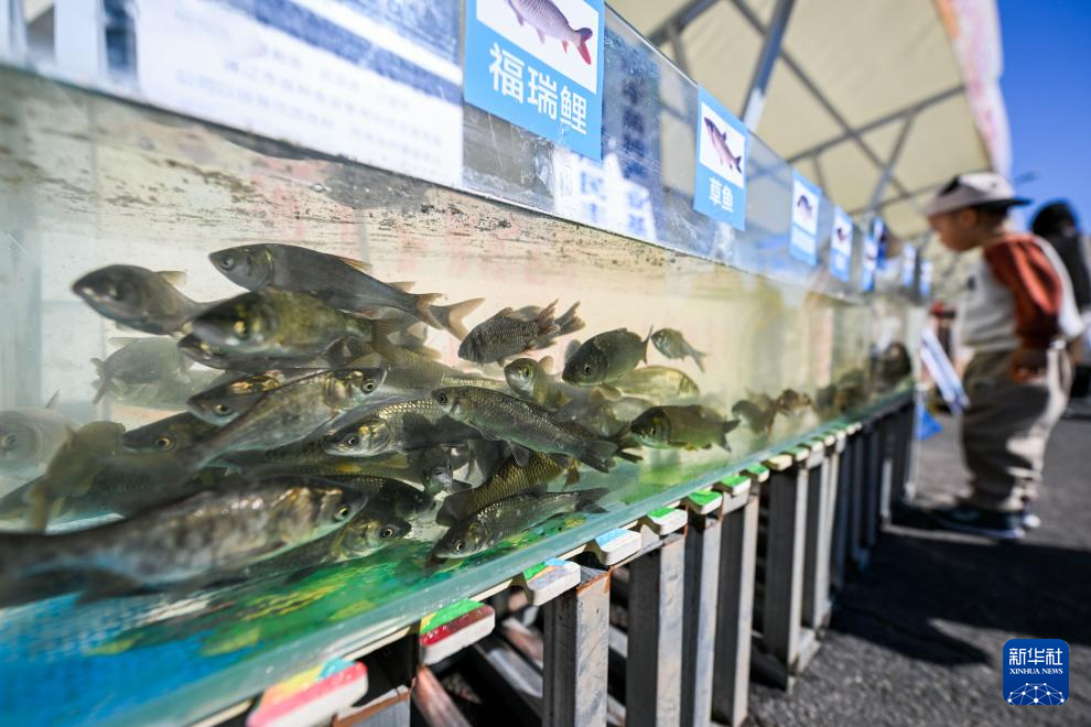 9月22日拍摄的丰收节上展示的各类水产。新华社记者 连振 摄