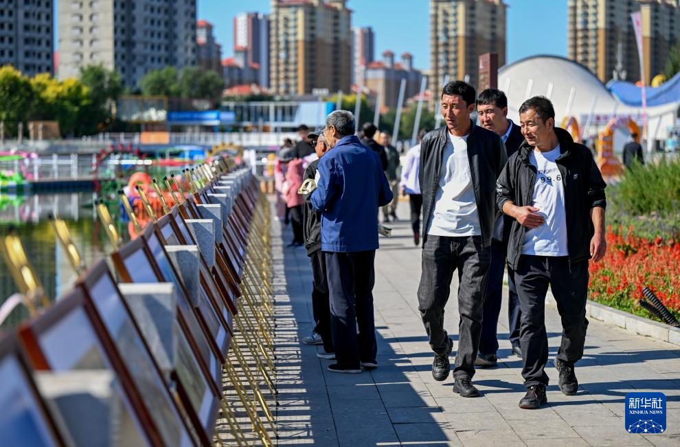 9月22日,市民在参观丰收节上展出的摄影作品。新华社记者 连振 摄