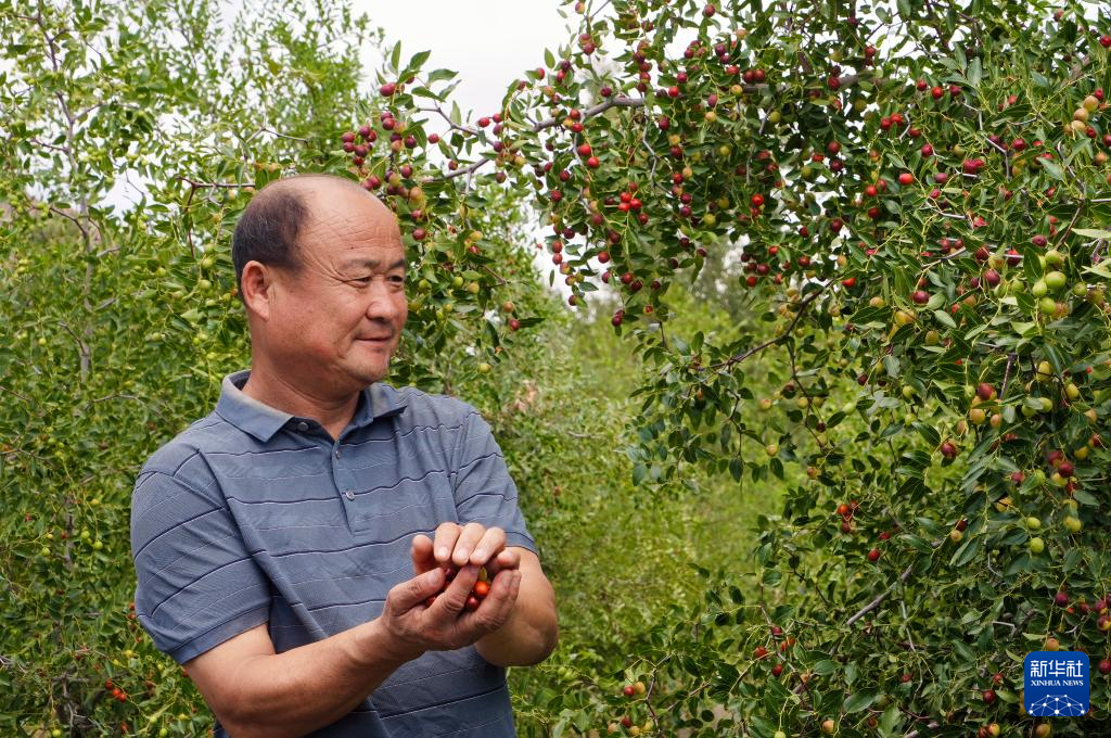 作为“国家林草乡土专家”的乌兰哈少嘎查村民任二换和村民们一边摘酸枣,一边告诉记者:“我们这个酸枣园位于乌兰布和沙漠东缘,一共有2400多亩,过去是光秃秃的砂石滩。酸枣树是乡土树种,不仅能防风固沙、改善生态,还有较高经济价值。我们种好酸枣树,就有了恢复生态、增加收入的新渠道。”