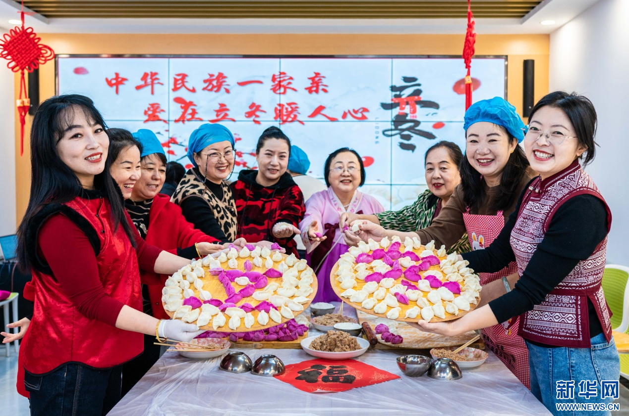 当日,内蒙古自治区呼和浩特市玉泉区清泉街社区开展 “中华民族一家亲 爱在立冬暖人心”主题活动,社区工作人员、居民代表和环卫工人共同包饺子、剪纸、制作糖葫芦,在欢快的氛围中迎接立冬节气的到来。