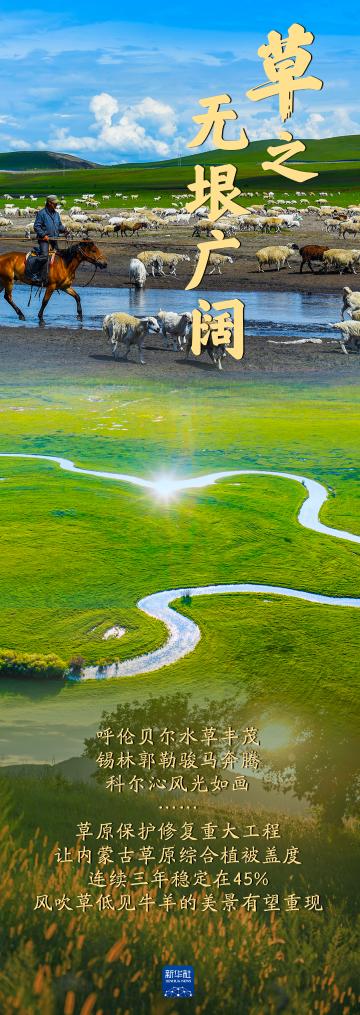 打开内蒙古自治区的生态画轴,山雄浑,水纵横,林茂密,田肥沃,湖清澈,草无垠,沙壮美。立足筑牢我国北方重要生态安全屏障的一体化保护和修复工程,让内蒙古的山水林田湖草沙和谐共生,各美其美、美美与共,绘就祖国北疆最“绚”风景线。