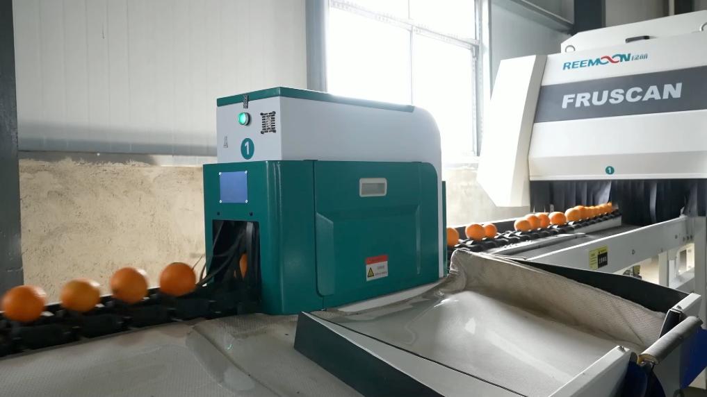 果园边,刚摘下的一筐筐鲜果立即被送去当地一家农场分拣。在这家农场的智能分级生产线上,一排排柑橘依次通过检测设备,它们的糖度、水分、果径大小等信息在智能分拣系统后台上一览无余。