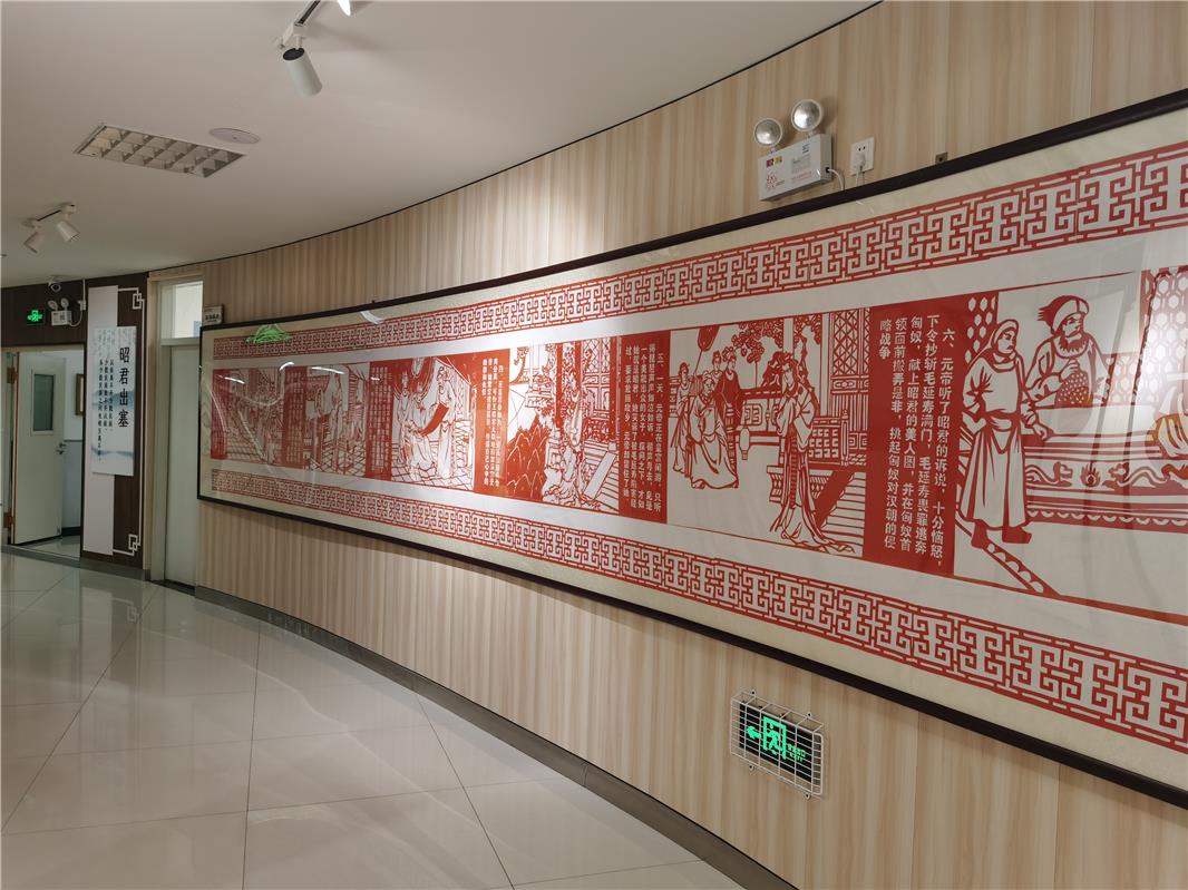 康巴什区第五小学展现铸牢中华民族共同体意识的剪纸长卷《昭君出塞》。