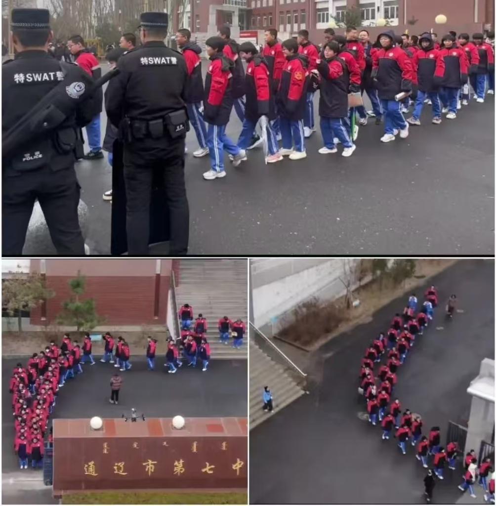 “经过学校门口的车辆要减速慢行、礼让行人。接送学生时请有序停放、即停即走!保障孩子的安全,人人有责!”在内蒙古通辽市第七中学每天上学、放学的时间段,伴随着无人机螺旋桨发出的嗡嗡声,执勤民警通过警用无人机群循环喊话,开启“护学”模式。