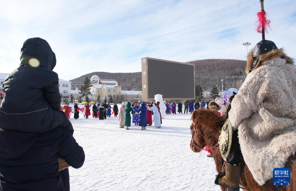 2024年12月31日,游客在阿尔山市圣泉广场观看民俗文艺演出。