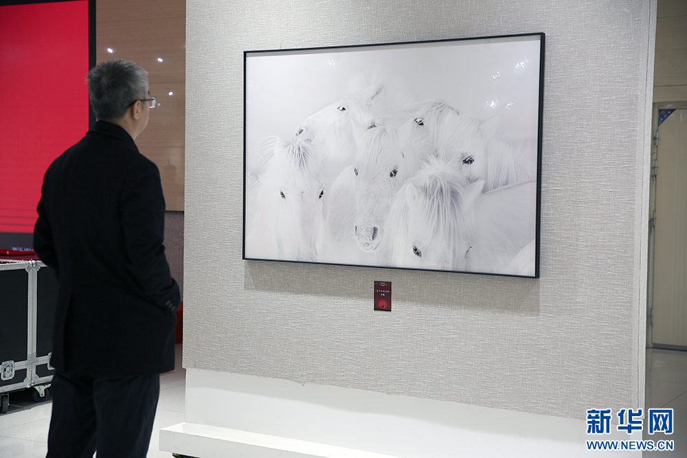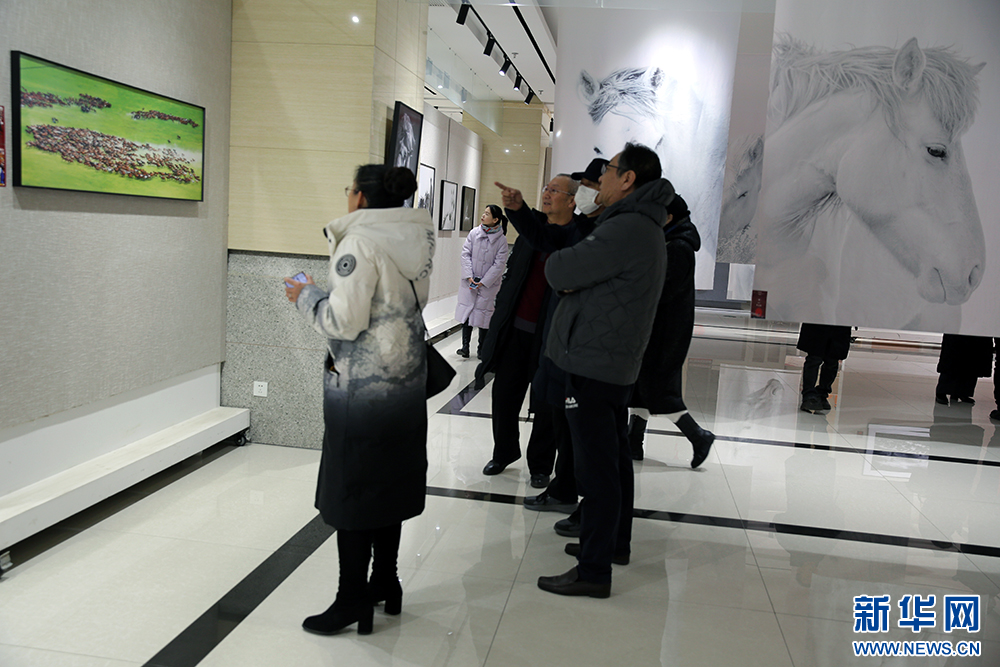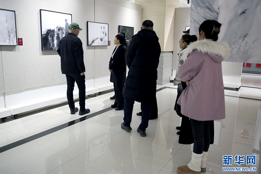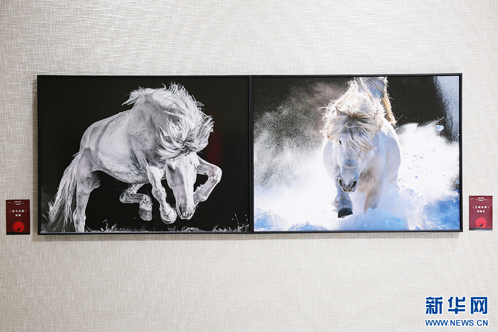 1月3日,“驰骋北疆 赓续华章——‘群星璀璨’蒙古马精神主题摄影作品展”上的摄影作品。新华网 石毅 摄