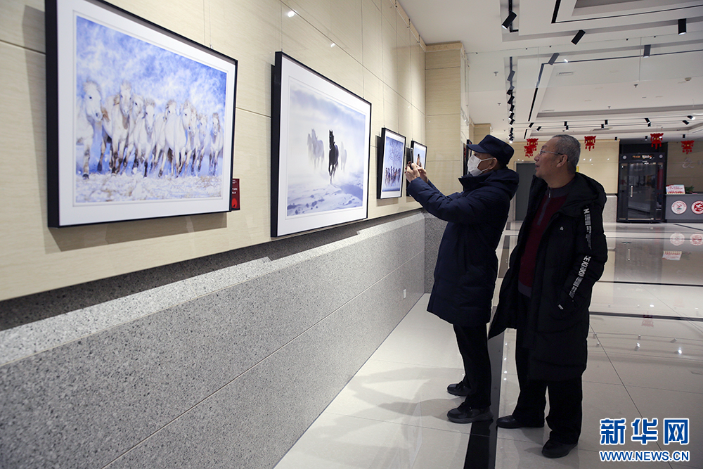 1月3日,观展者在呼和浩特市文化馆欣赏摄影作品。新华网 石毅 摄
