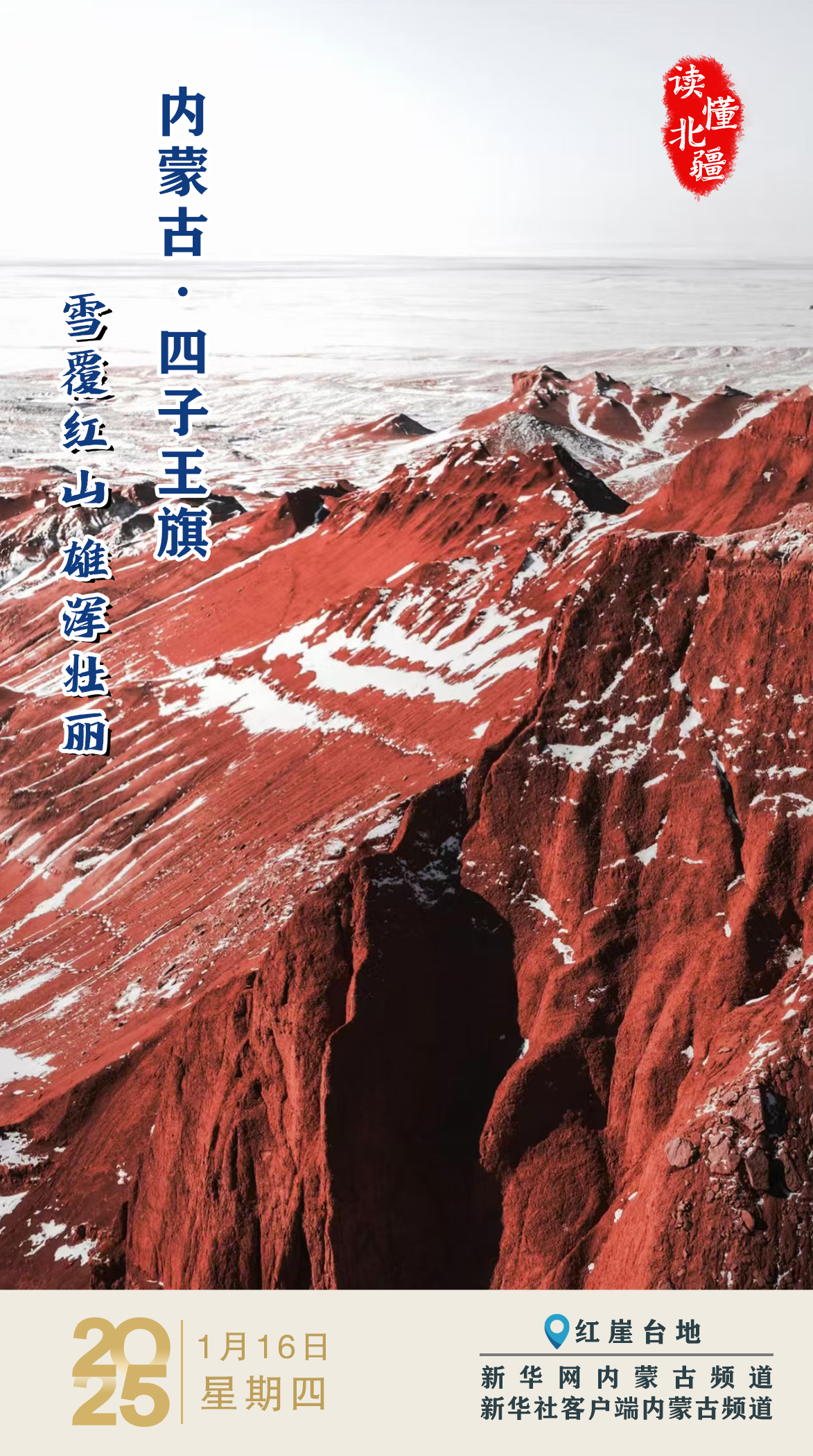 读懂北疆|2025年1月16日,雪覆红山 雄浑壮丽 内蒙古四子王旗- 新华网内蒙古频道