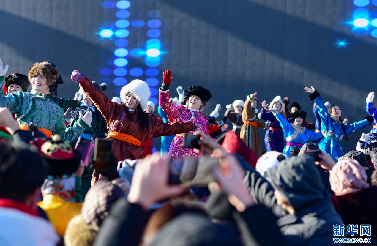 1月19日,演员在内蒙古首届草原涮肉节上进行文艺表演。新华网发(王正 摄)