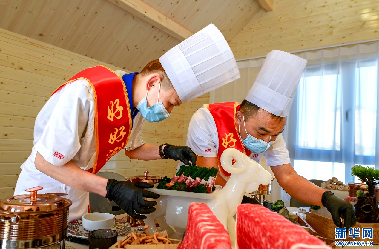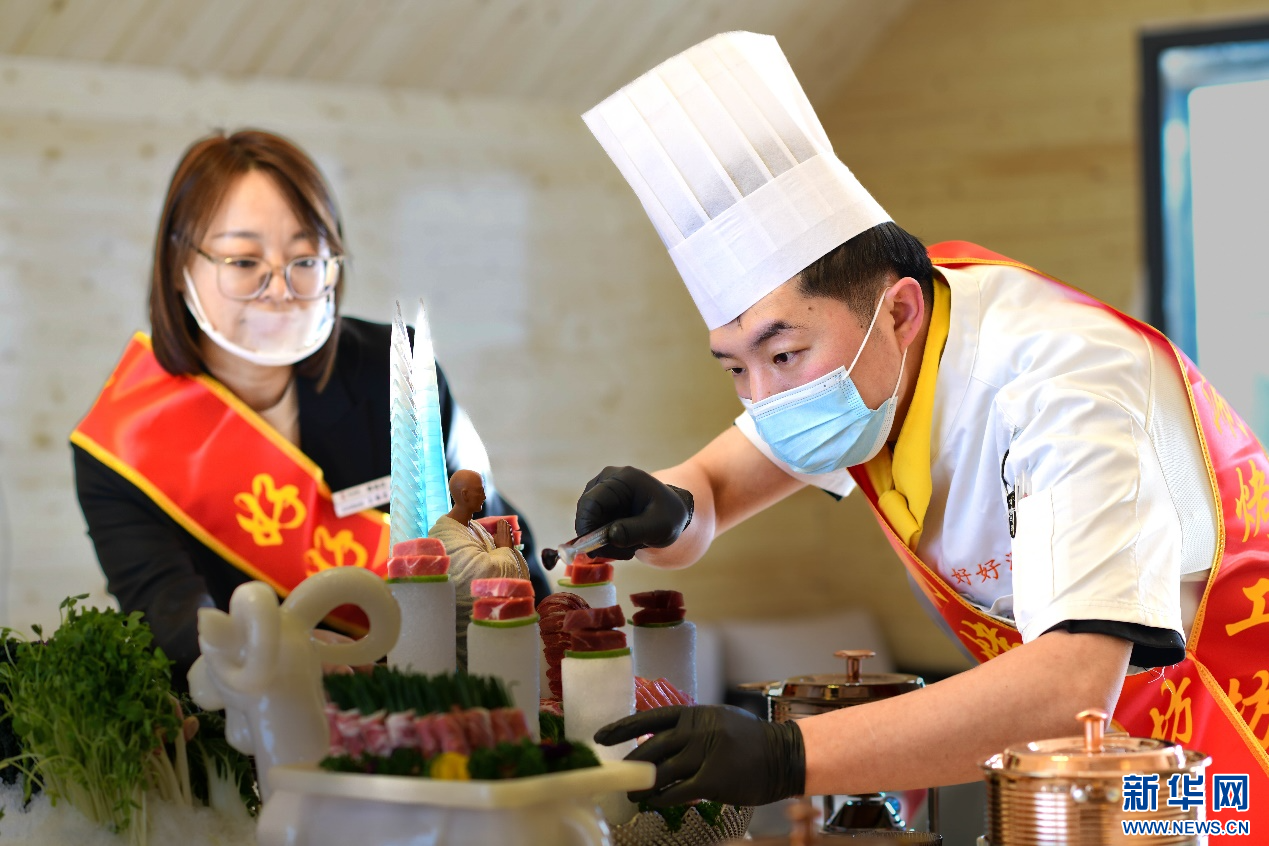 1月19日,参赛选手在内蒙古首届草原涮肉节风味涮肉宴大赛比赛中。新华网发(王正 摄)