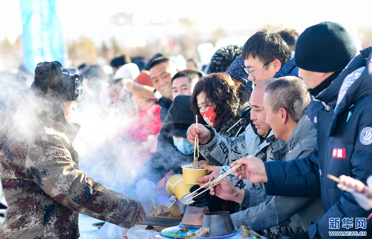 1月19日,市民和游客在内蒙古首届草原涮肉节上品尝涮肉。新华网发(王正 摄)