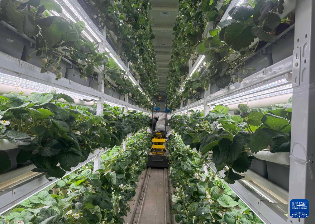 走进察右前旗数智草莓基地,这里的种植方式颠覆了传统印象,现代化的多层草莓种植架整齐排列,一排排绿油油的草莓苗在架子上成排垒放,高达几十米。