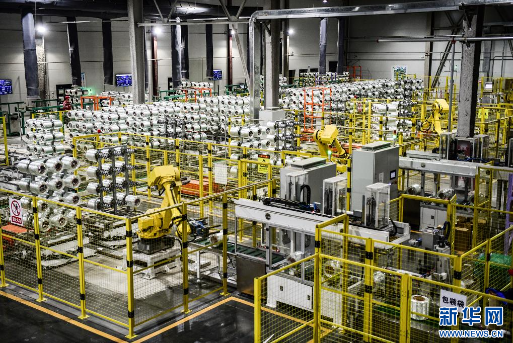 2月11日,在位于和林格尔县的内蒙古天皓玻纤生产项目车间内,机械手在玻璃纤维生产线上作业。新华网发(康文魁 摄)