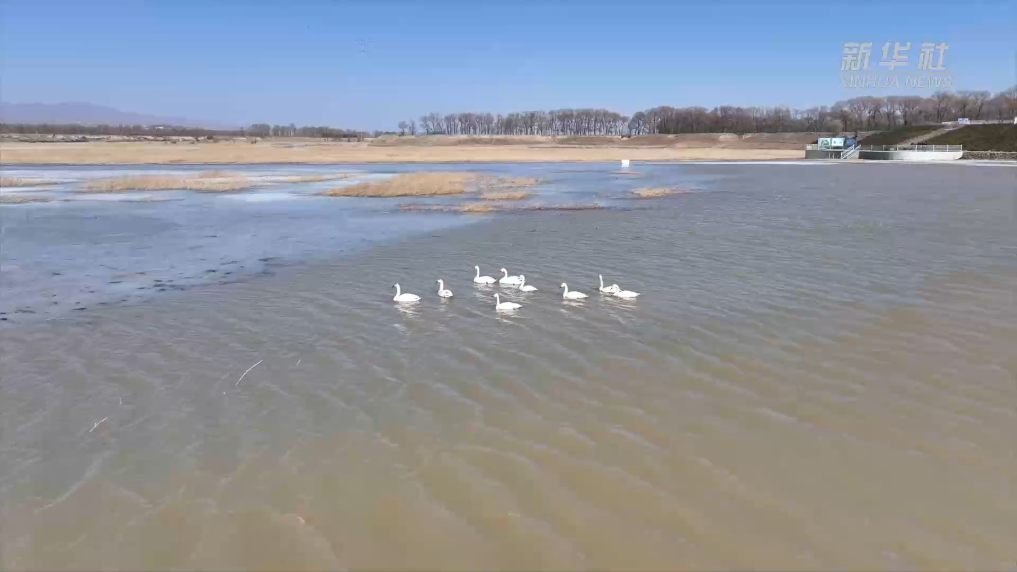 随着天气逐渐转暖,正在解冻的岱海波光粼粼。近日,位于内蒙古乌兰察布市凉城县的岱海自然保护区迎来了今年首批北归候鸟,上百只天鹅等候鸟悠闲地漂浮在水面。