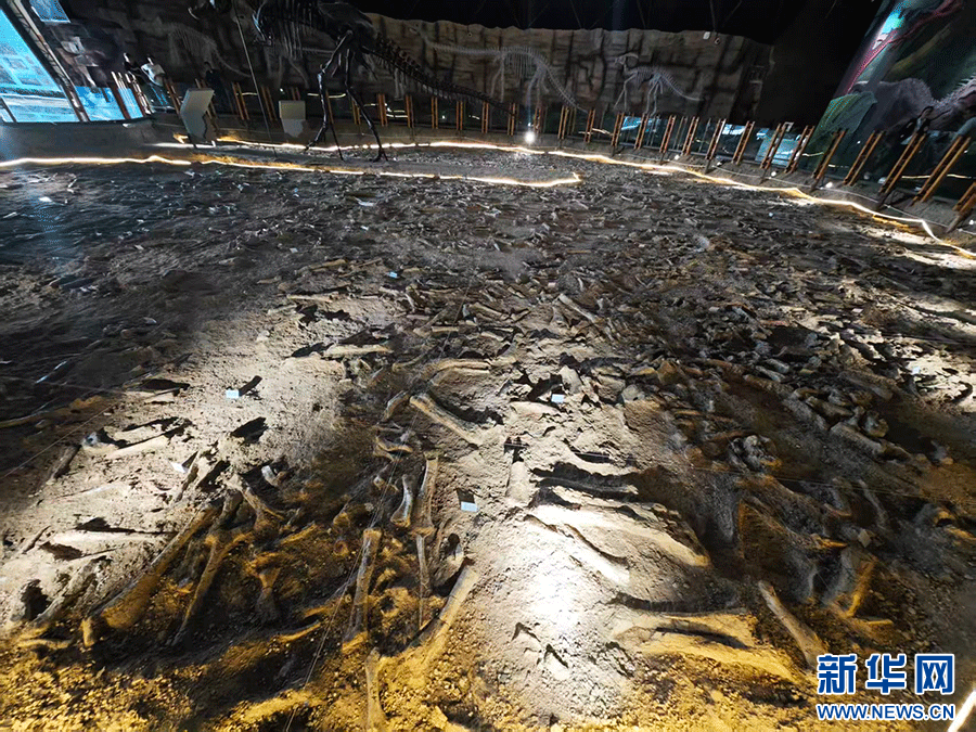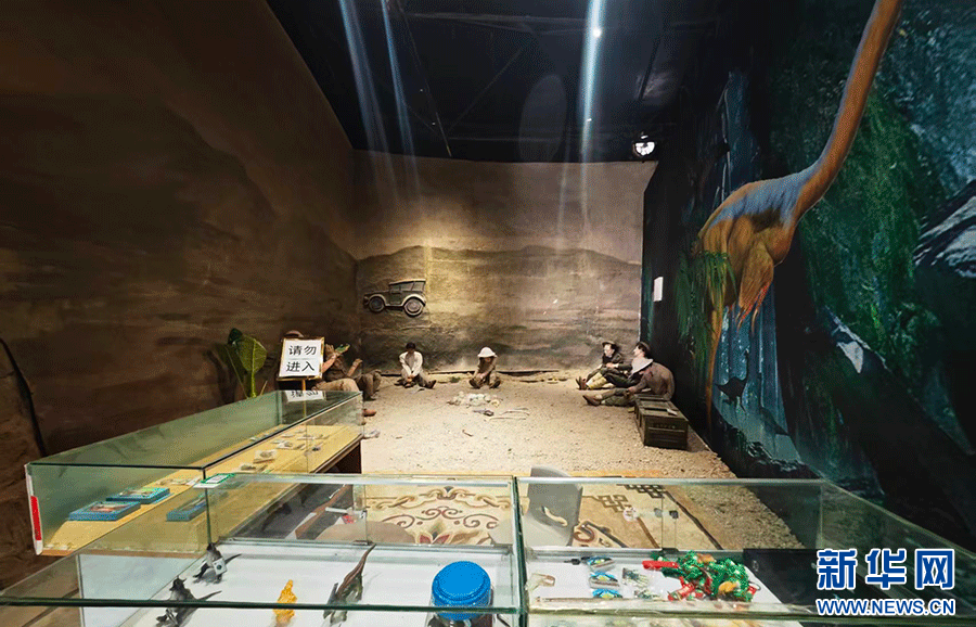 二连浩特国家地质公园恐龙化石埋藏馆内展陈的考古复原场景。新华网 徐红梅摄
