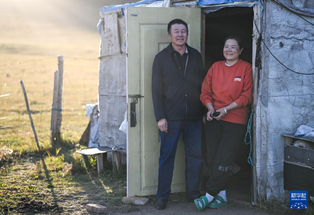 9月19日,都楞宝力高和妻子都冷苏布道在夏牧点。新华社记者 连振 摄