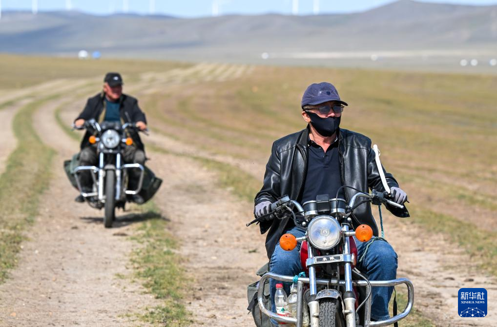 今年52岁的都楞宝力高是游牧转场的“老把式”。“以前都是骑马转场,现在是骑摩托和开车。以前在夏牧场只能搭蒙古包,现在基本都有固定板房,还有太阳能供电,照明、取暖和保存食物都很方便。”都楞宝力高说。