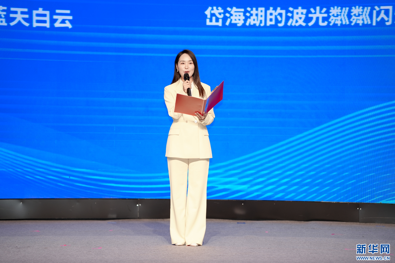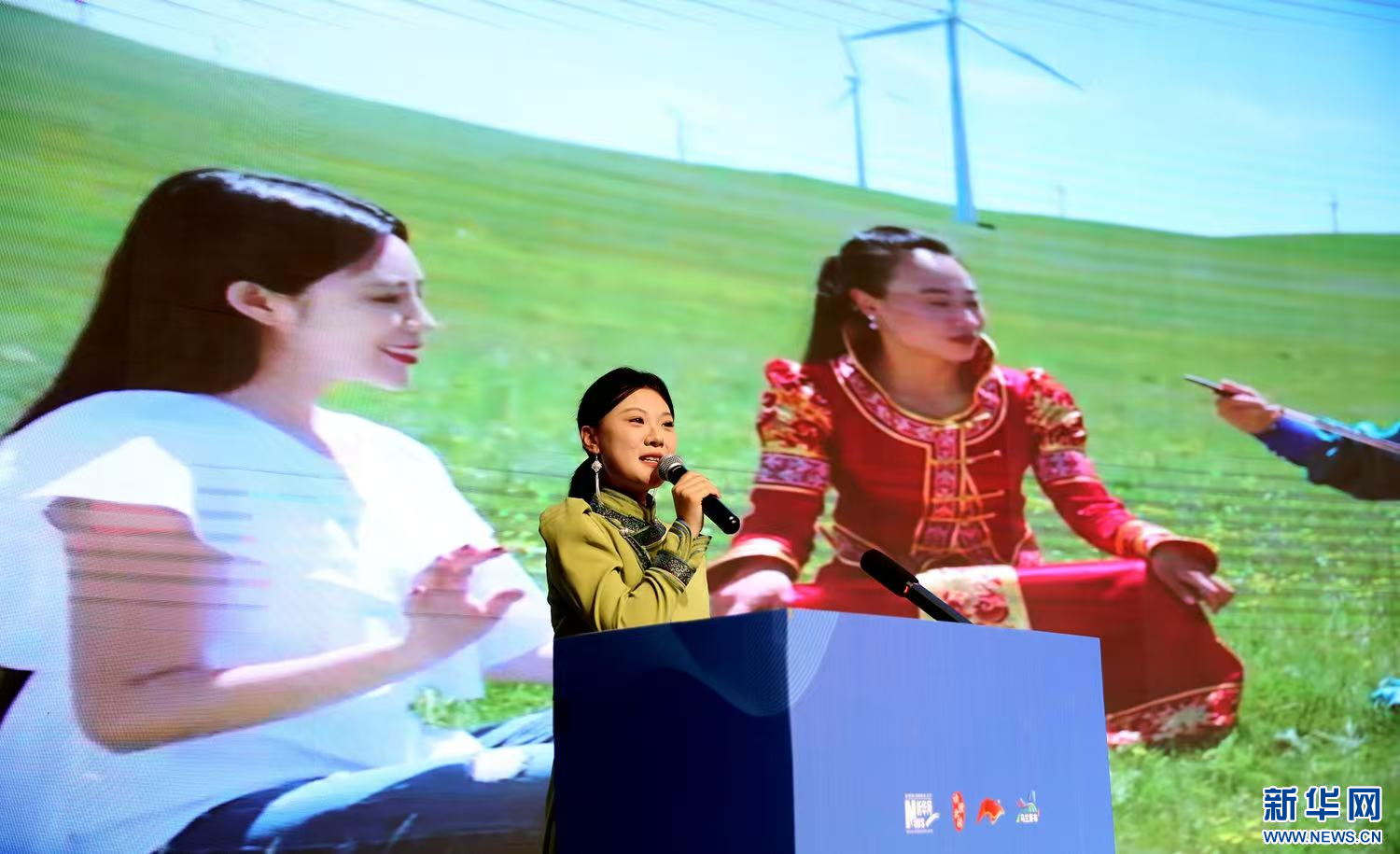 《欣约启明星》节目制作人、主持人温梦欣朗诵孟祥东先生创作的《乌兰察布赞歌》。新华网发(王俊平 摄)