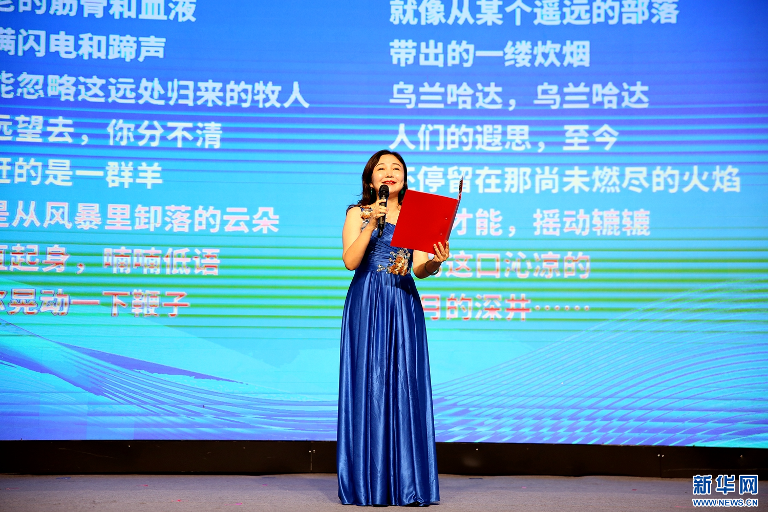 国家级普通话测试员、鄂尔多斯市朗诵协会会长萨娜,朗诵内蒙古文联副主席、中国诗歌学会副会长、内蒙古诗歌学会会长阿古拉泰的诗歌作品《乌兰哈达》。