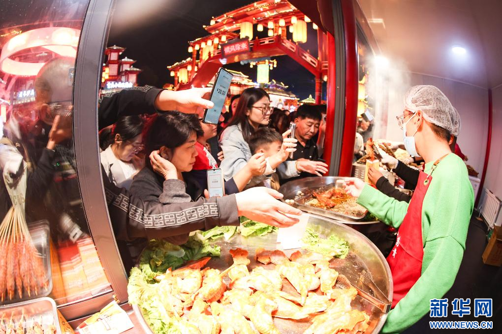 夜色渐深,整个街区变成一座大型舞台。不定时的街头微景观演绎、随机“掉落”的惊喜互动,让人充满期待。来自山西大同的一名游客表示:“这里的氛围特别好,不仅能看表演、品美食,还能感受到独特的文化气息。”