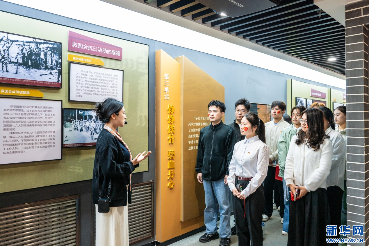 10月1日,内蒙古师范大学马克思主义学院的学子们在绥蒙各界抗日救国会旧址纪念馆参观研学。新华网发(丁根厚 摄)