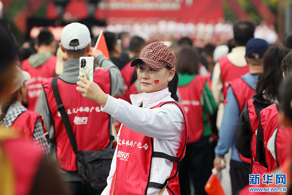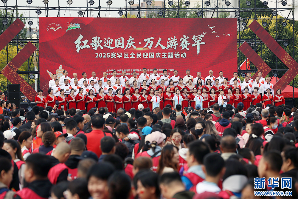 10月1日上午,“红歌庆国庆·万人游赛罕”2025赛罕区全民庆国庆主题活现场。新华网 石毅 摄
