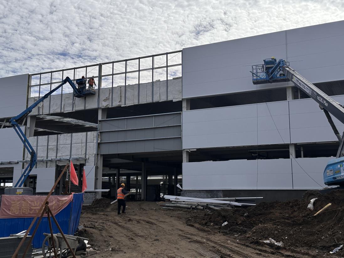 日前,在内蒙古兰格格乳业有限公司日产500吨智能化低温酸奶项目现场,机器轰鸣声交织,一派忙碌景象。项目主体结构已全面成型,灰白色外墙框架在秋日阳光下清晰可见,工人们站在脚手架上,有条不紊地安装墙板。走进车间,内部装修同步推进,地面找平、管线铺设等工作有序开展。