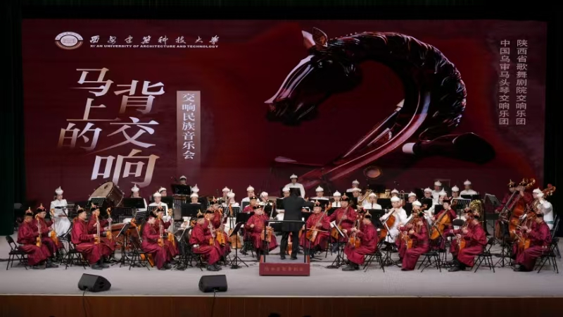 6月10日,西安建筑科技大学的音乐厅内,马头琴与陕北民歌的创新融合引发全场共鸣。《漠中萨拉乌苏》展现草原辽阔,《山丹丹开花红艳艳》经交响化改编焕发新彩,而《万马奔腾》的互动高潮更让学子们惊叹:“马头琴声里,仿佛看见骏马踏过草原的烟尘。”这场由蒙陕艺术家联袂呈现的“琴韵草原·智汇乌审”音乐会,既是艺术对话,更是发展理念的交融。