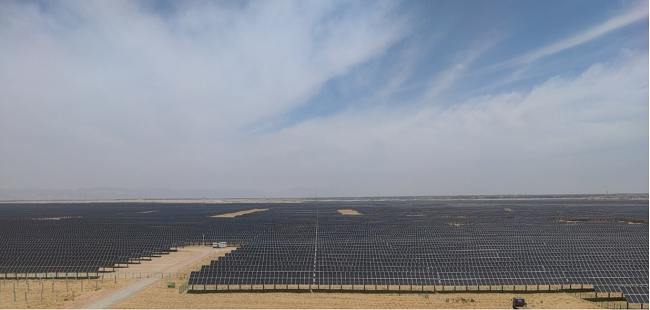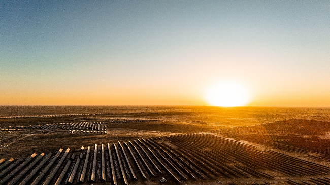 该项目全部使用隆基绿能Hi-MO 7组件。该产品是隆基绿能基于TOPCon技术的标杆产品,基于更高的双面率(~80%)、更优秀的功率温度系数(-0.28%/℃)与较低的组件工作温度、更佳的抗光衰性能(首年衰减不高于1%)与弱光发电表现,特别适合应用于地表反射率高、环境温度高的荒漠戈壁,相对于市场其他双面组件发电增益可达3%,发电效率提升显著。