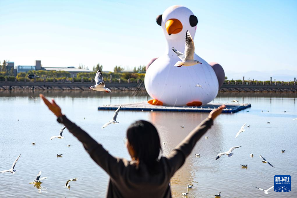 深秋时节,大批南飞越冬的红嘴鸥在内蒙古乌海市境内的乌海湖驻足觅食、栖息,引来众多市民游客前来观赏并与之互动,绘就人鸥同乐的靓丽风景。近年来,随着乌海湖及周边生态环境持续向好,途经这里的候鸟数量和种类逐年增加。(康文魁 摄影报道)