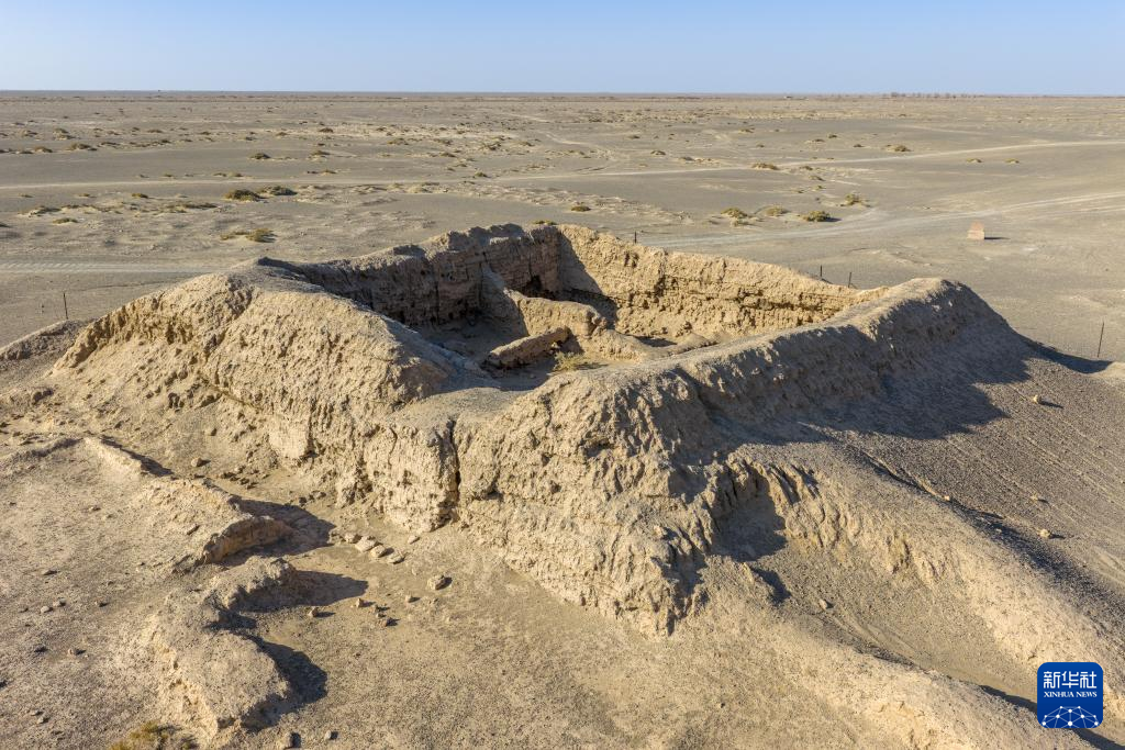 这是11月3日在内蒙古阿拉善盟额济纳旗拍摄的居延遗址中的唐代大同城遗址(无人机照片)。