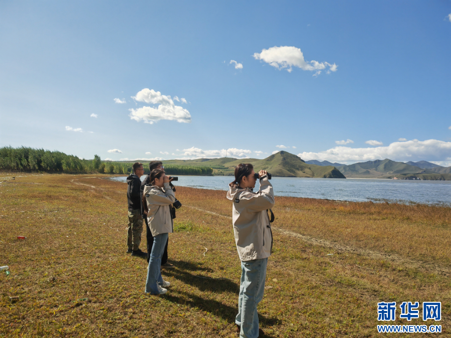 赤峰市巴林右旗野生动物保护有关工作人员在进行候鸟监测。新华网发(赤峰市林草局供图)