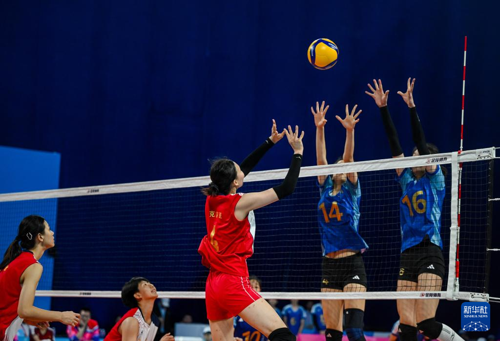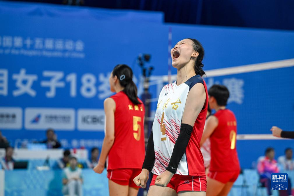 当日,在深圳进行的第十五届全国运动会排球女子18岁以下组小组赛B组比赛中,上海队3比0战胜内蒙古队。