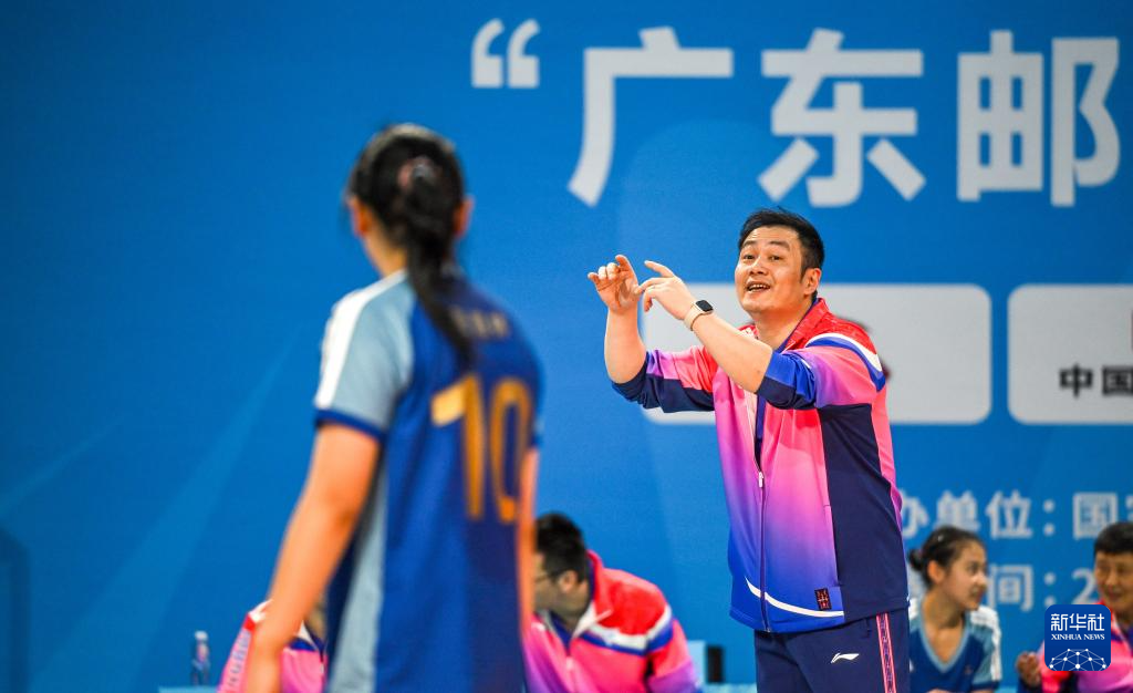 11月13日,内蒙古队教练王琳(中)在场边布置战术。