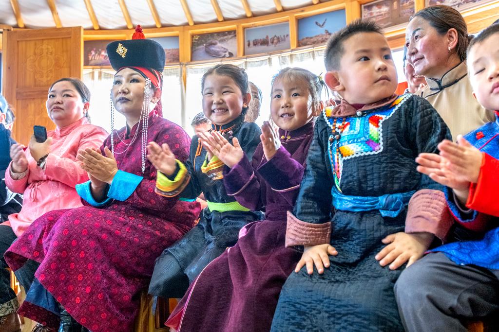 11月12日,在内蒙古锡林郭勒盟苏尼特右旗额仁淖尔苏木吉呼郎图嘎查赛音巴特尔护边驿站,观众们在观看乌兰牧骑的演出。 乌兰牧骑是什么?在蒙古语中,它意为“红色的嫩芽”。他们是一群扎根草原的“文艺青年”,肩负着把文化演出送到边疆牧户的使命。1957年,为了解决交通不便、地广人稀、文化供给不足等现实难题,乌兰牧骑在内蒙古锡林郭勒盟苏尼特右旗应运而生。他们背着乐器、拉着大篷车,翻山越岭,把文艺演出送到草原上的每家每户。“不落下一个蒙古包”,是他们许下的庄严承诺。