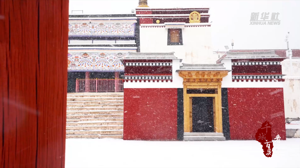 阳光穿透薄雾洒向雪地,折射出澄澈光影。半山银装素裹,半山苍翠依旧,藏式建筑群与自然景致交相辉映,勾勒出一幅兼具历史底蕴与自然之美的冬日画卷。