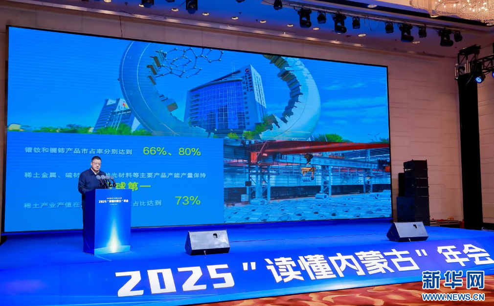 新华网呼和浩特11月29日电(徐红梅)在29日举行的2025“读懂内蒙古”年会上,包钢(集团)公司党委常委、副总经理刘振刚以“彰显服务国家战略的包钢‘稀'力量”为主题发表推介,向与会嘉宾展示了包钢集团在稀土产业领域的新成就、新担当。