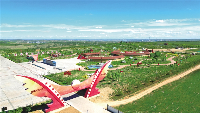 在乌兰布和沙漠东缘、黄河之滨,磴口县人民打响黄河岸线阻沙入黄战役;鄂尔多斯以阻沙入黄为主攻方向,建立起库布其沙漠绿化带、淤地坝、光伏治沙带、沙漠锁边林四道防线……