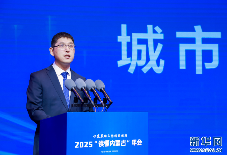 11月29日,呼伦贝尔市委宣传部副部长王全成在2025“读懂内蒙古”年会上作城市主题推介。新华网发