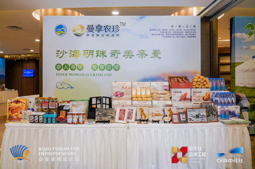 椰风拂面、碧波摇帆、鸥鹭逐潮……在美丽宜人的海南省琼海市博鳌小镇,一场聚焦“信用赋能品牌‘新三化’”的高端对话近日举行,在2025企业家博鳌论坛·品牌信用建设论坛现场,内蒙古通辽市奈曼旗特色产品同步亮相,10余类草原优品集中展出,每一种备受信赖的特色产品都彰显着信用底色。