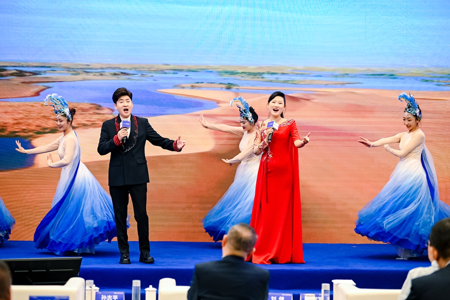 在2025企业家博鳌论坛“歌游内蒙古 欢乐冰雪季”内蒙古冬季旅游主题传播推广活动现场,乌兰牧骑队员倾情献唱。新华网发