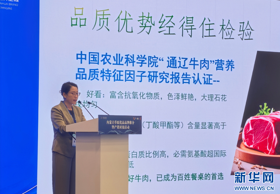 在品牌宣讲环节,乌兰察布市、通辽市、赤峰市,和林格尔县、巴林右旗、敖汉旗、达拉特旗、库伦旗等地代表,推介了“原味乌兰察布”“通辽牛肉”“昭乌达羊”“敖汉小米”“黄河几字湾”等一批具有地域特色和文化内涵的草原优品品牌,充分展现了内蒙古农牧业优质资源、品牌潜力。