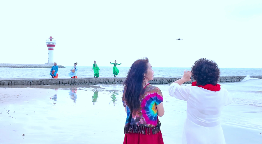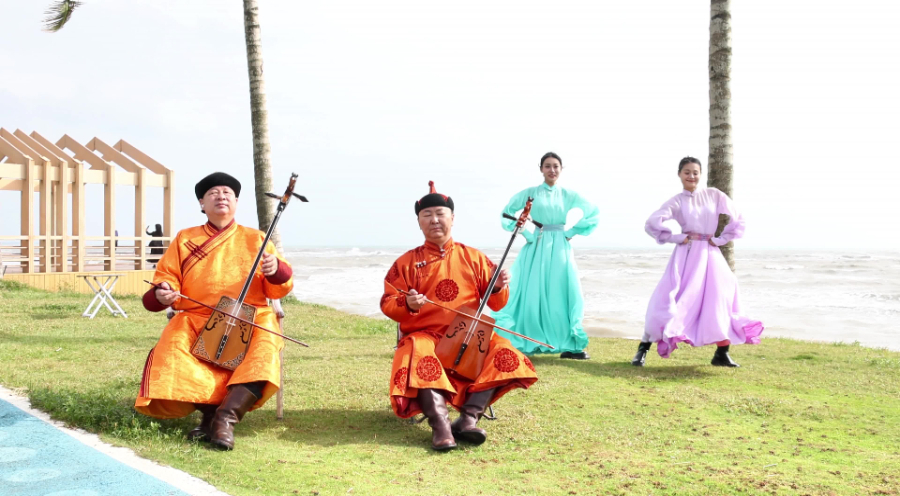2025企业家博鳌论坛期间,内蒙古乌兰察布市乌兰牧骑队员带着草原的清风与豪情在海边深情献艺。新华网发