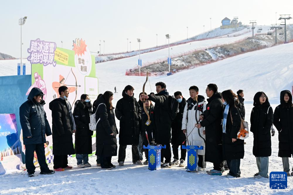 12月14日,游客在马鬃山滑雪场体验雪地射箭。新华社记者 李志鹏 摄