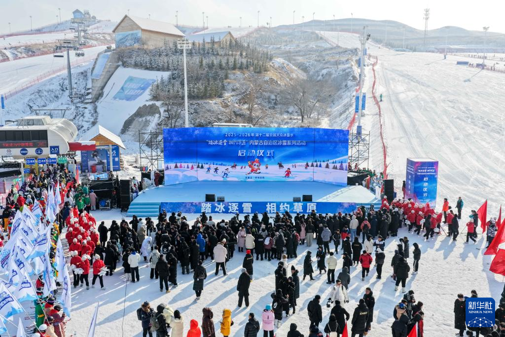 当日,“踏冰逐雪 相约草原”第十二届全国大众冰雪季(内蒙古分会场)启动仪式在呼和浩特马鬃山滑雪场举行。
