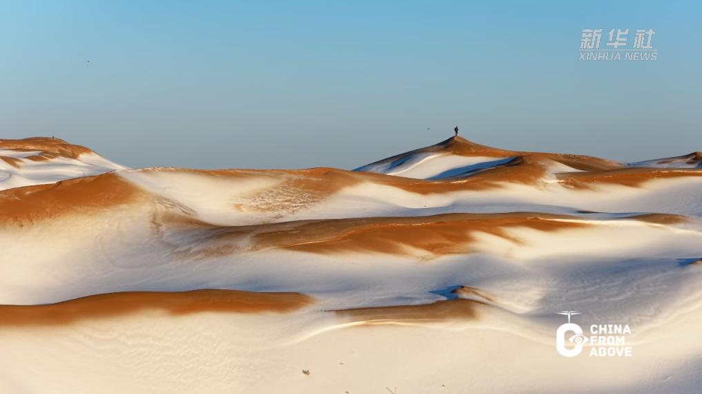 近日,内蒙古自治区鄂尔多斯市杭锦旗库布其沙漠迎来雪后初霁,独特的大漠景致令人叹为观止。当东方天际泛起鱼肚白,一轮红日缓缓升起,金色晨光穿透云层,倾洒在皑皑白雪覆盖的沙丘上,沙脊线在白与金的交织中明暗交错,原本萧瑟的大漠瞬间被赋予灵动与温暖。