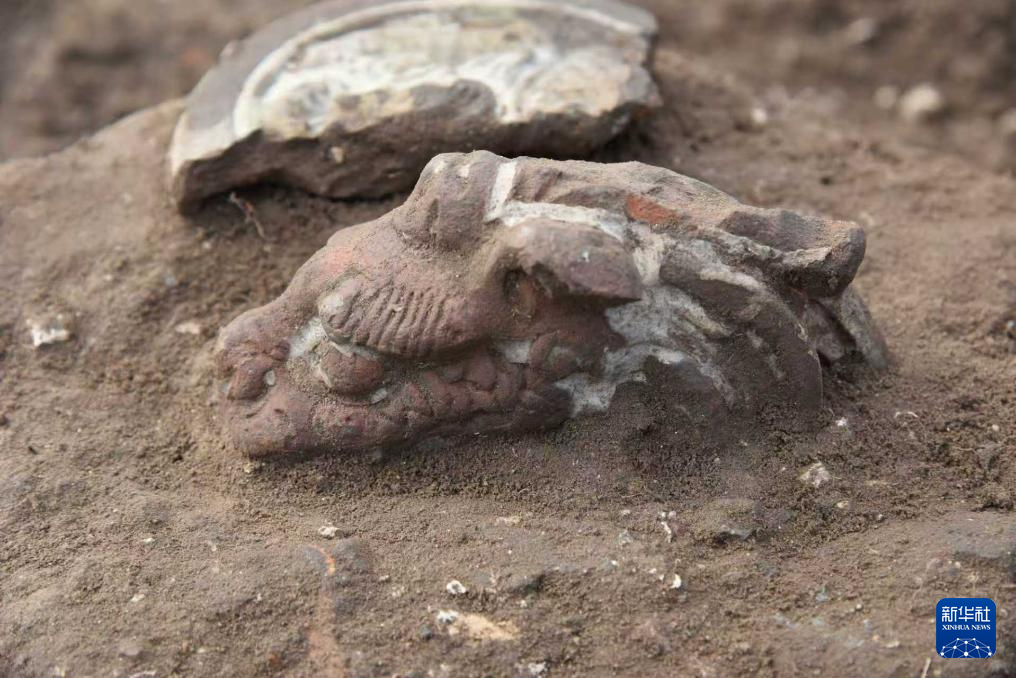 据了解,本年度发掘出土遗物主要出自基址上的倒塌堆积,出土遗物多为建筑材料,包括陶板瓦、筒瓦、瓦当、滴水、脊兽、砖,以及石螭首、栏杆构件等。陶建筑材料多有琉璃器,以绿色琉璃为多。瓦当、滴水纹饰以龙纹为主,凤纹为次。其他遗物中可见大量残塑件,应是建筑或佛像上的装饰品。