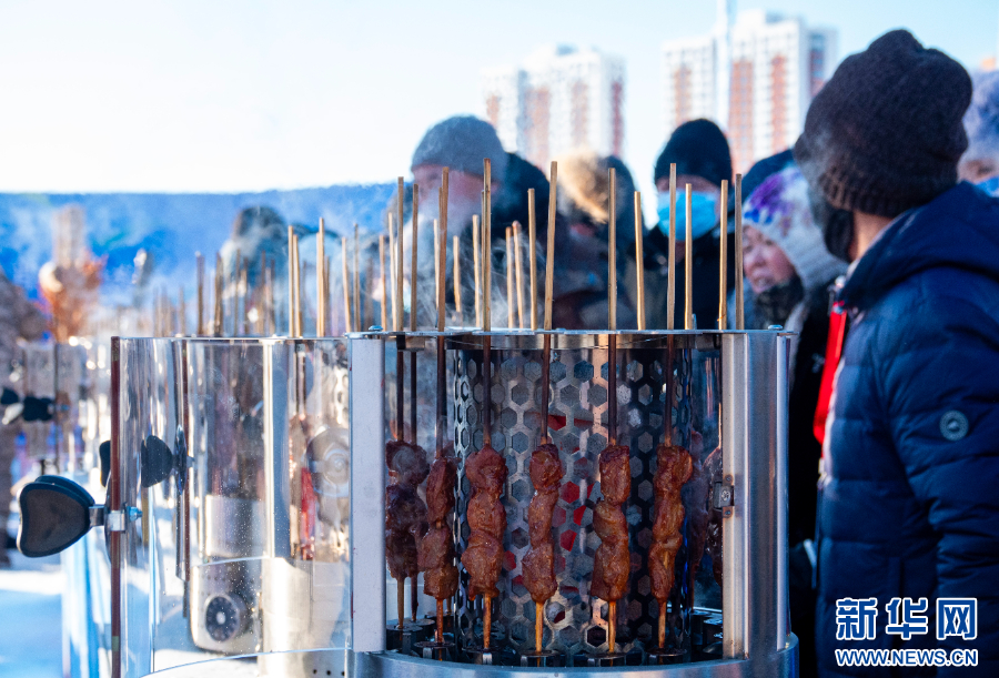 12月21日,内蒙古呼伦贝尔市海拉尔区伊敏河文化休闲长廊上的风味小吃。新华网发(吕昊俊 摄)
