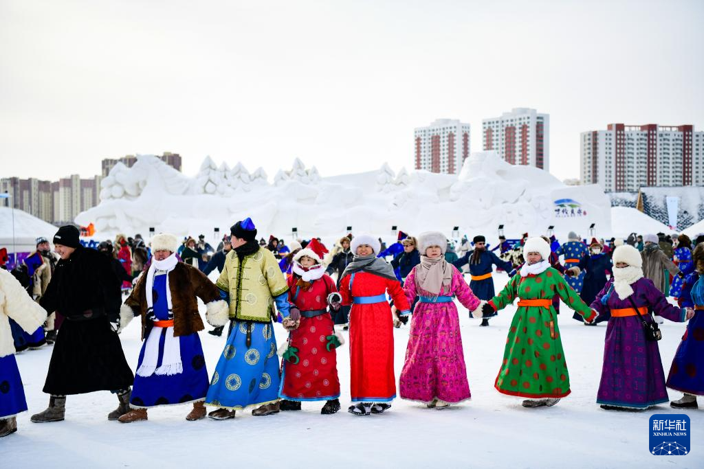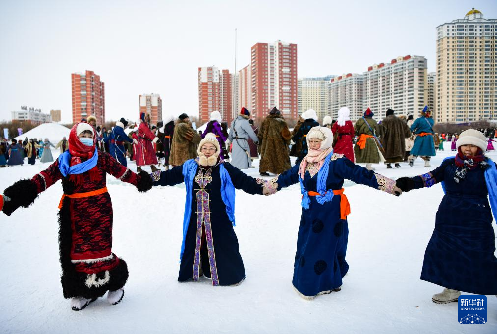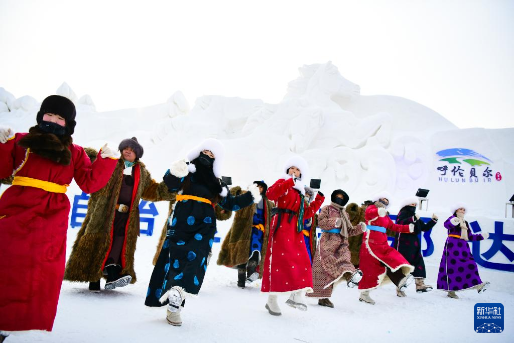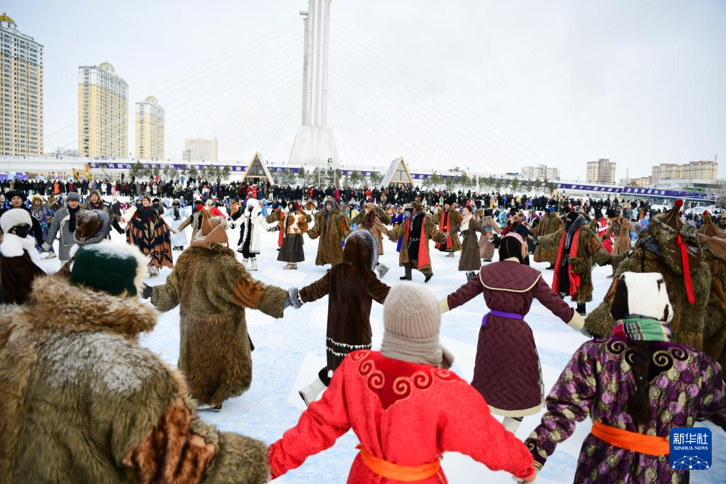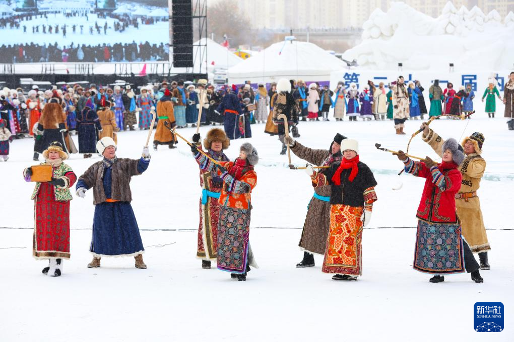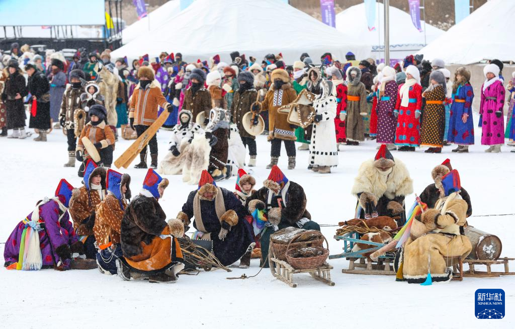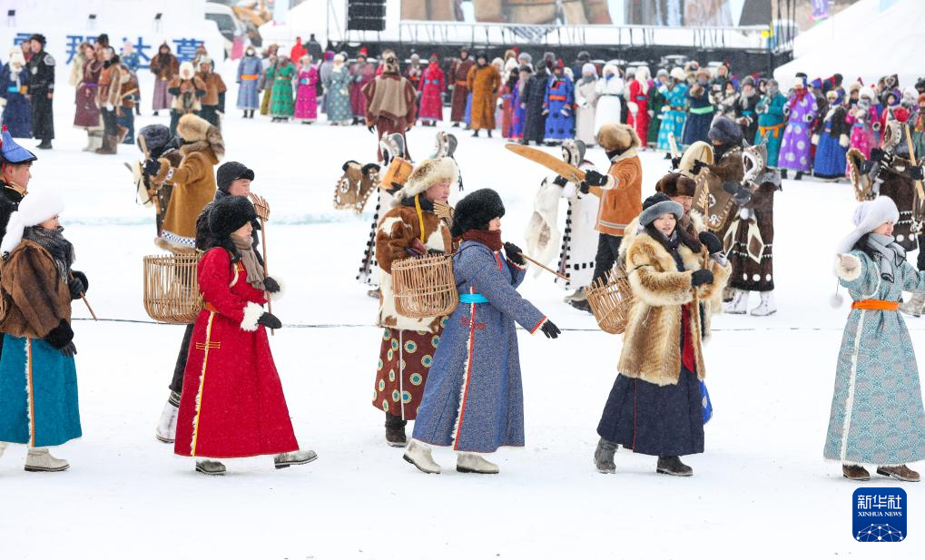 12月20日,参加开幕式彩排的敖鲁古雅鄂温克牧民带领驯鹿入场。